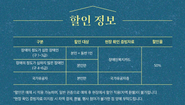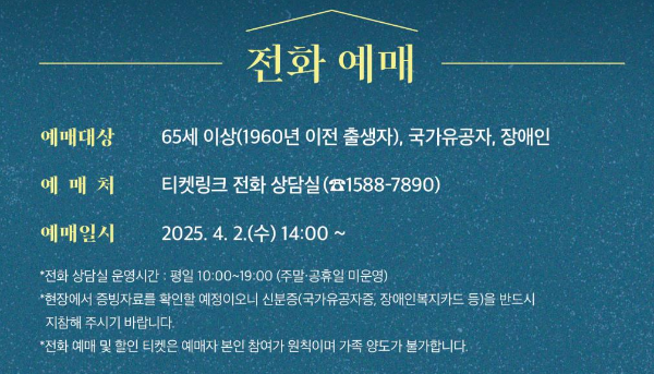 - 65세 이상, 국가유공자, 장애인 대상으로는 전화 예매도 진행하니 확인해주세요.